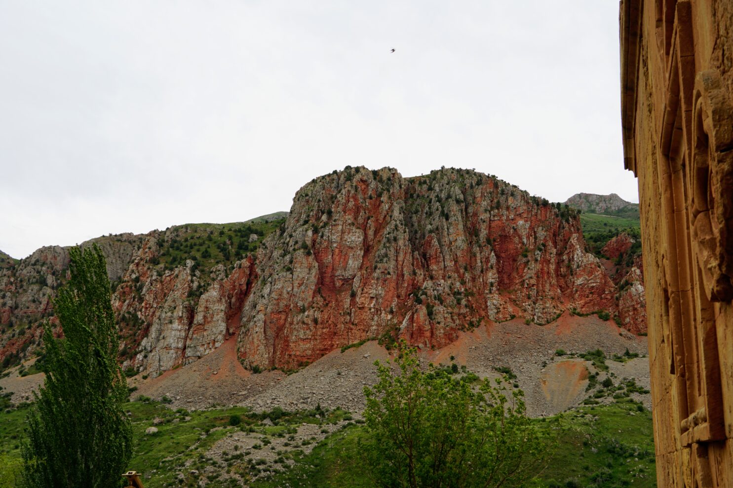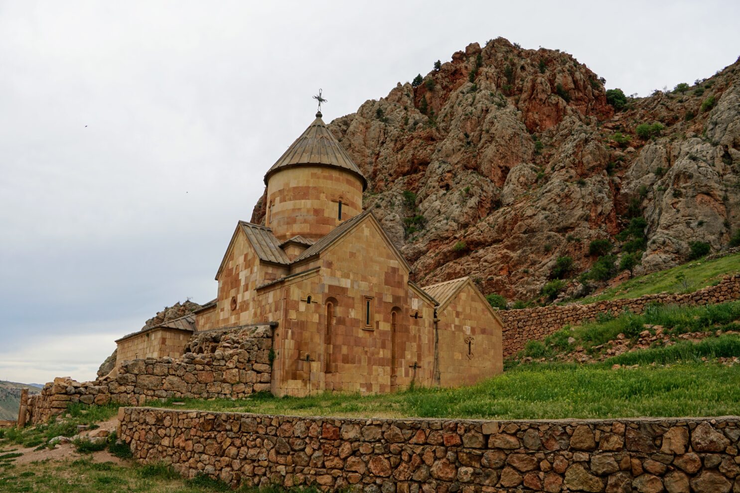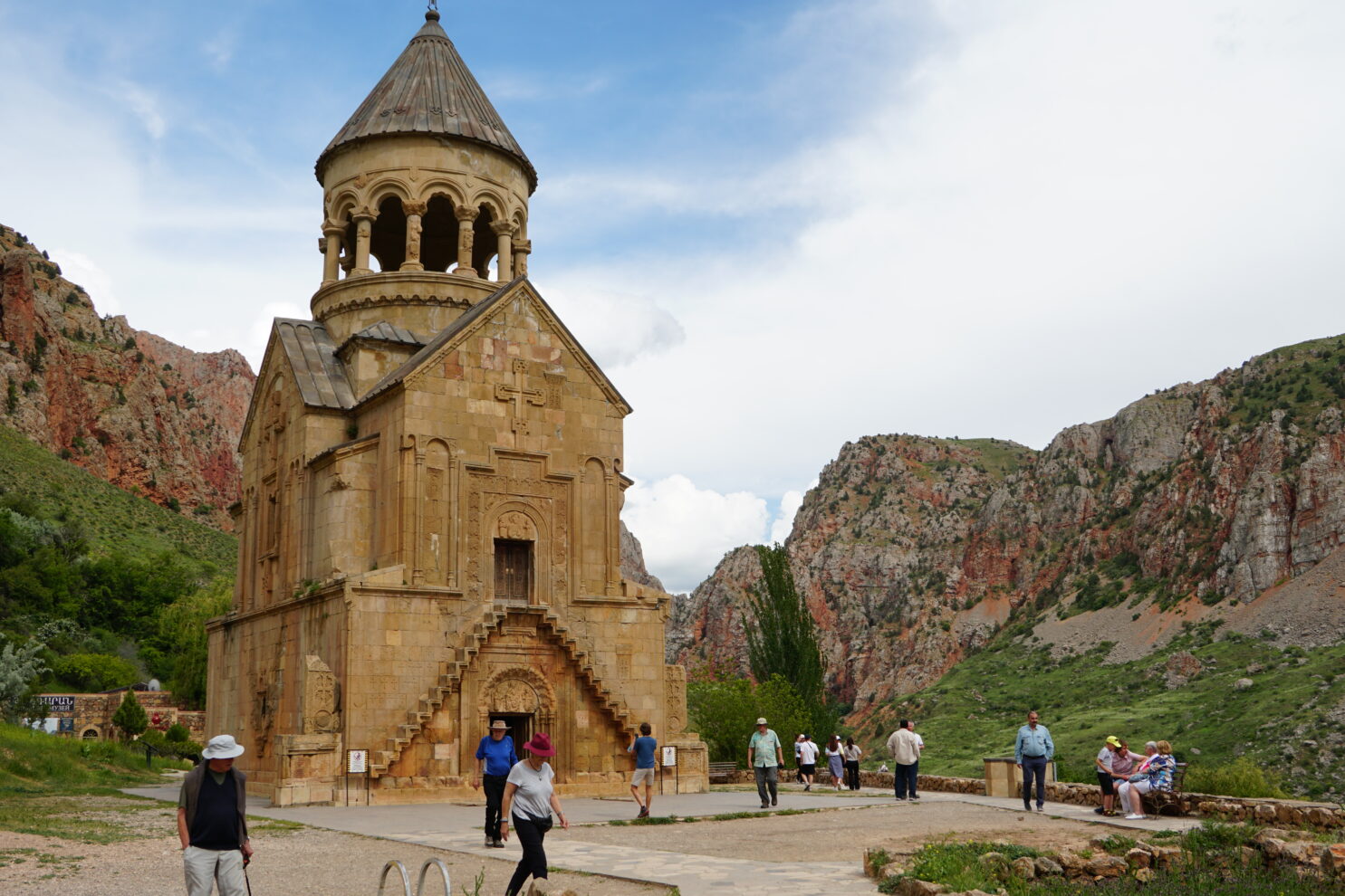 Następnie udaliśmy się do Norawank, jednego z najbardziej imponujących klasztorów Armenii. Położony w wąwozie rzeki Amaghu, otoczony jest przez czerwone, skaliste klify. Klasztor, założony w XIII wieku, jest znany ze swojego duchowego znaczenia i wyjątkowej architektury. Wyróżniają się w nim charakterystyczne zdobienia autorstwa słynnego ormiańskiego rzeźbiarza Momika. Spacerując po terenie Norawanku, mogliśmy poczuć mistyczną atmosferę tego miejsca. Podziwialiśmy bogato zdobione kamienne reliefy i kaplice, które doskonale wpisują się w surowy, górski krajobraz. To miejsce, w którym historia, sztuka i natura spotykają się w zachwycającej harmonii. Na prawdę, jeśli będziecie w tych rejonach to musicie go odwiedzić. Sam klasztor wykonany jest z czerwonej skały, podejrzewam, że z tej samej co otaczające góry, które robią największą robotę. Są bardzo fotogeniczne. Podobno najbardziej jesienią, gdy otaczająca przyroda również się zaczerwieni.