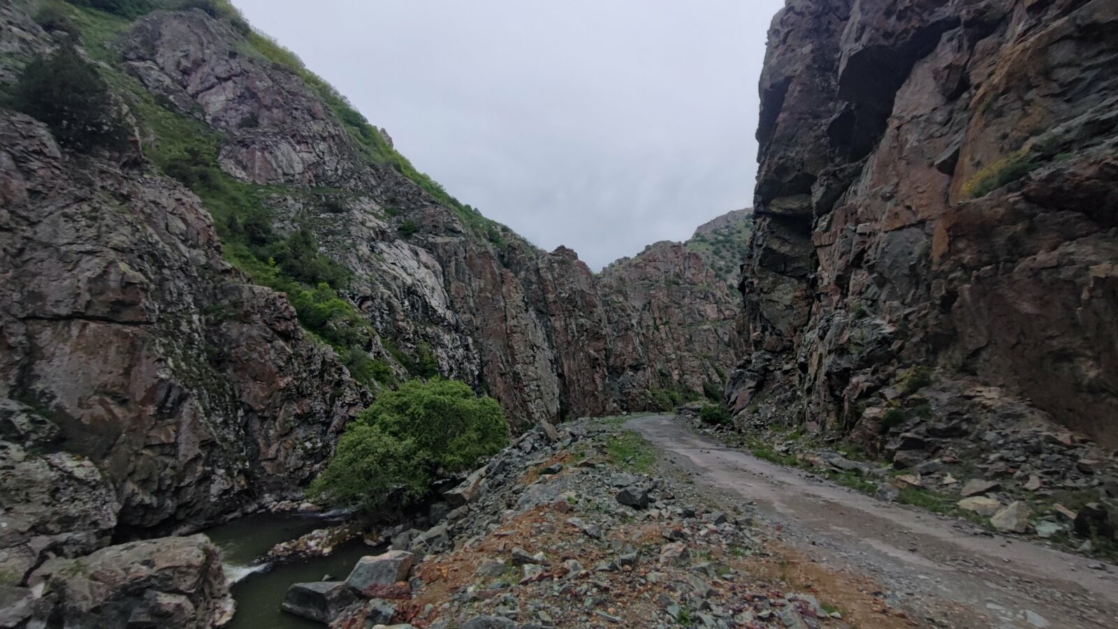 Z początku, z determinacją próbowaliśmy przesuwać głazy na pobocze, torując sobie drogę. Jednak po kilku metrach, widząc, że przed nami jeszcze 17 kilometrów, postanowiliśmy się poddać. Droga przez kanion, mimo że pełna wyzwań, oferowała przepiękne krajobrazy i ciszę natury, której nie chcieliśmy przegapić – choć w końcu musieliśmy zawrócić.