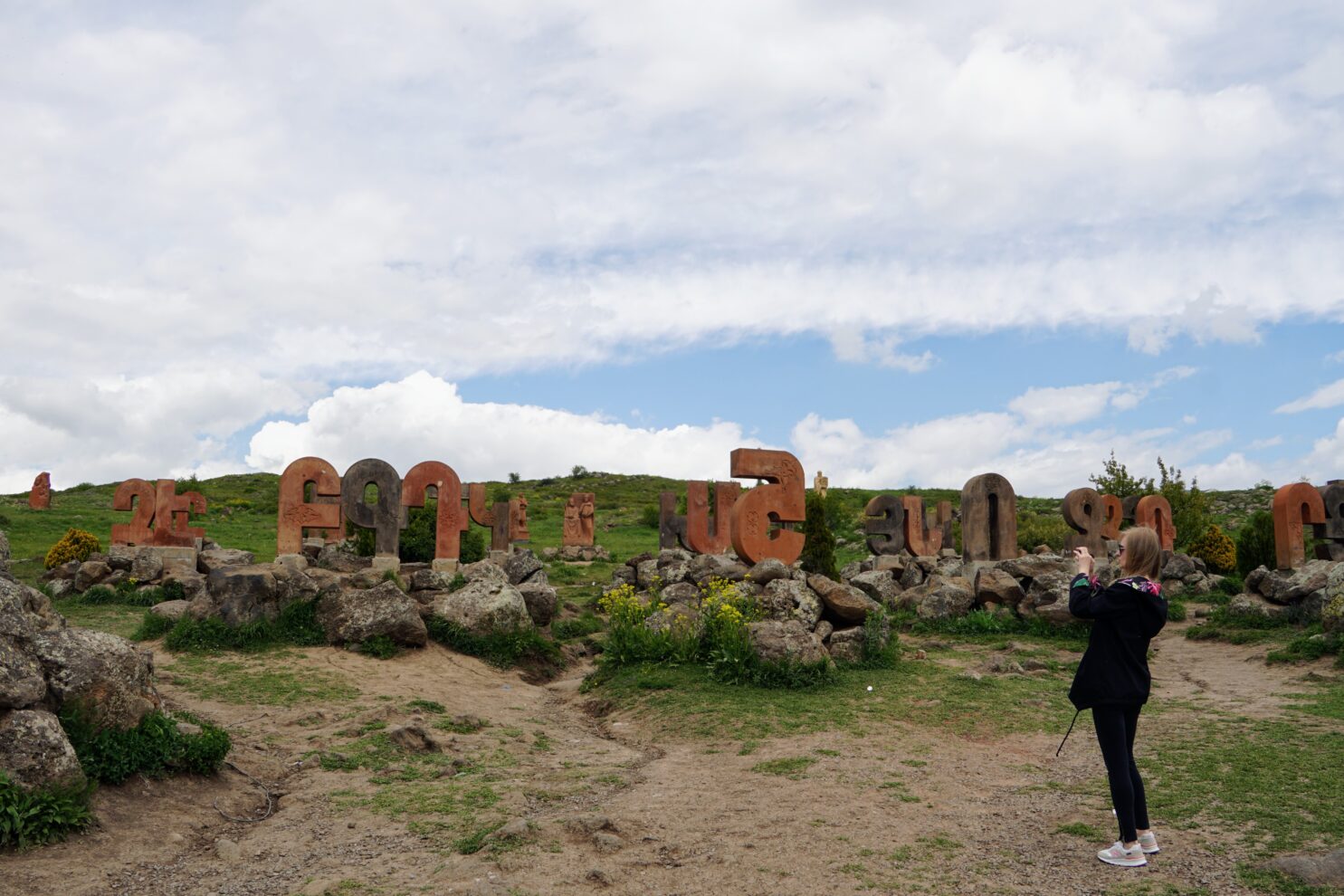 Później zatrzymaliśmy się na moment przy pomniku Alfabetu Ormiańskiego, który znany jest również jako Pomnik Alfabetu, to unikalne miejsce w Armenii, które celebruje ormiańskie dziedzictwo językowe. Znajduje się on w malowniczej okolicy w pobliżu wsi Artaszawan, u podnóża góry Aragac, najwyższego szczytu Armenii. Pomnik został wzniesiony w 2005 roku, z okazji 1600-lecia stworzenia ormiańskiego alfabetu przez Mesropa Masztoca.